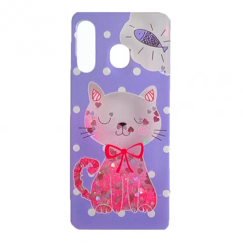 Накладка TPU Lively Glitters Samsung A20s (2019) A207F Cat Lavander (тех.пак)