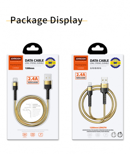 Дата кабель JoyRoom S-M363 King Kong microUSB 1.2m 2.4A Gold