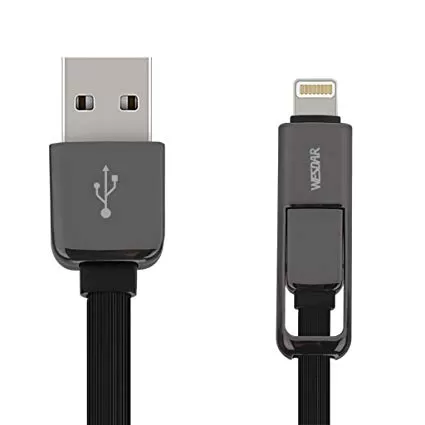 Дата кабель Wesdar T19 2in1 (Micro+Lightning) 1m 2A Black