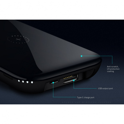 УМБ PLATINET 10000mAh QI WIRELESS CHARGING Type-C Black [44244]