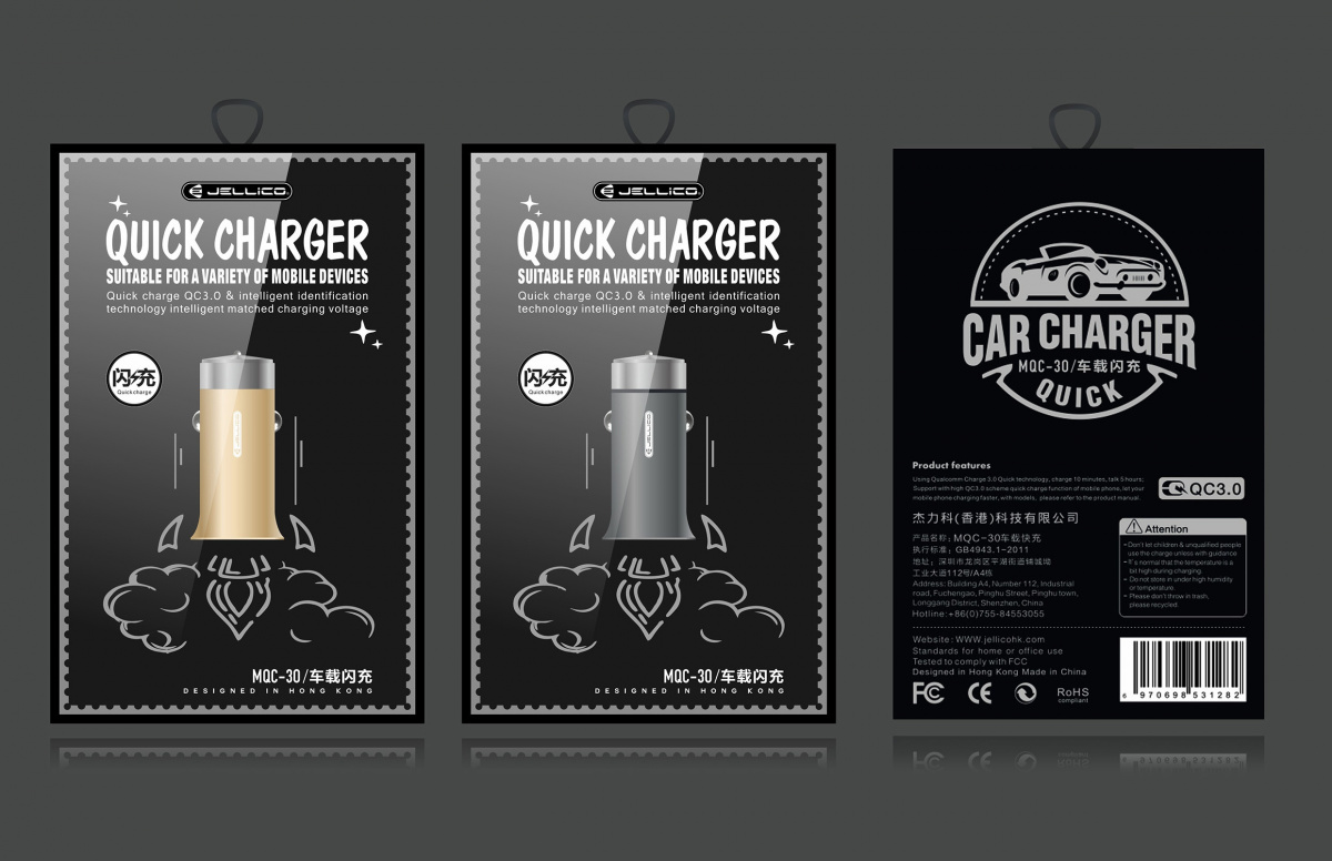 АЗУ Jellico MQC3.0 1USB QC 3.0 Grey