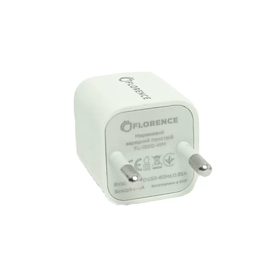 МЗП FLORENCE 1USB 1A + microUSB cable white (FL-1000-WM)
